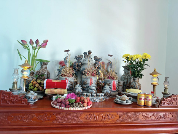 Bàn thờ được chuẩn bị chỉn chu đầy đủ lễ vật